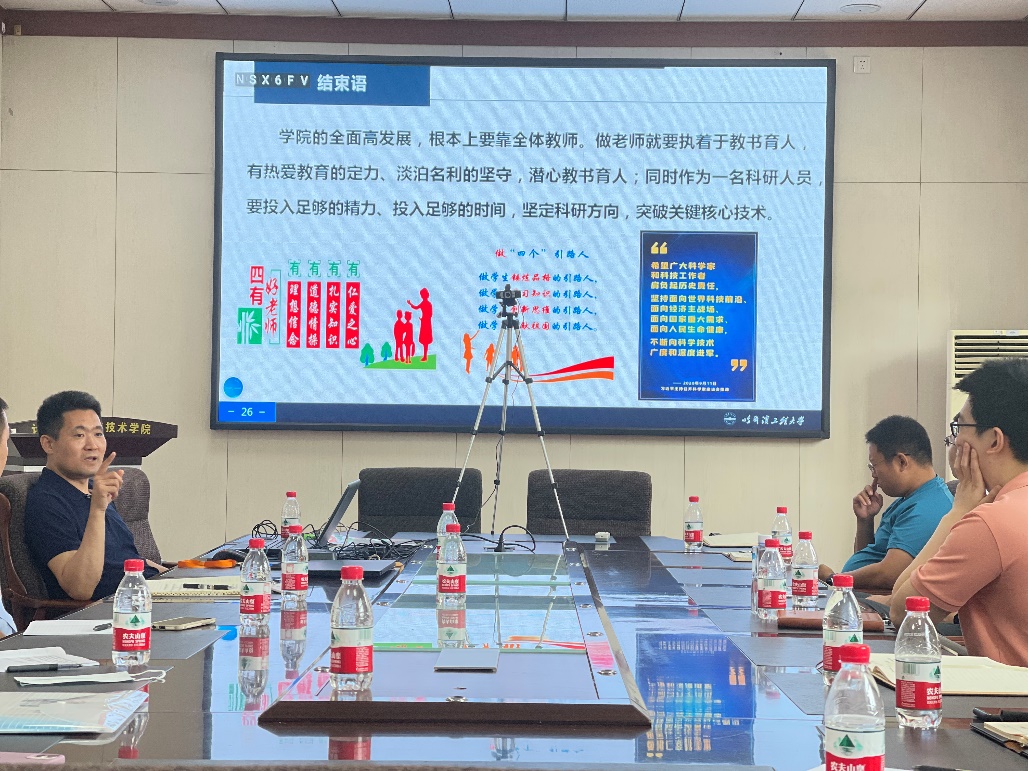 蔡院长沿着1953年中国人民解放军军事工程学院(简称“哈军工”)始建的历史轨迹,带领全体新教师一起品读我院发展历程及文化传承,从学院学科与专业情况、师资队伍、学生规模、当前我国高校发展形势、学院十四五发展规划等各方面对学院工作进行了详细的介绍和解读,使新入职教职工们对我院有了更深刻的了解。讲座最后,对新进教师提出了“珍惜时光、不负韶华、提升能力、增长才干,莫等闲,白了少年头。”的殷切期望。